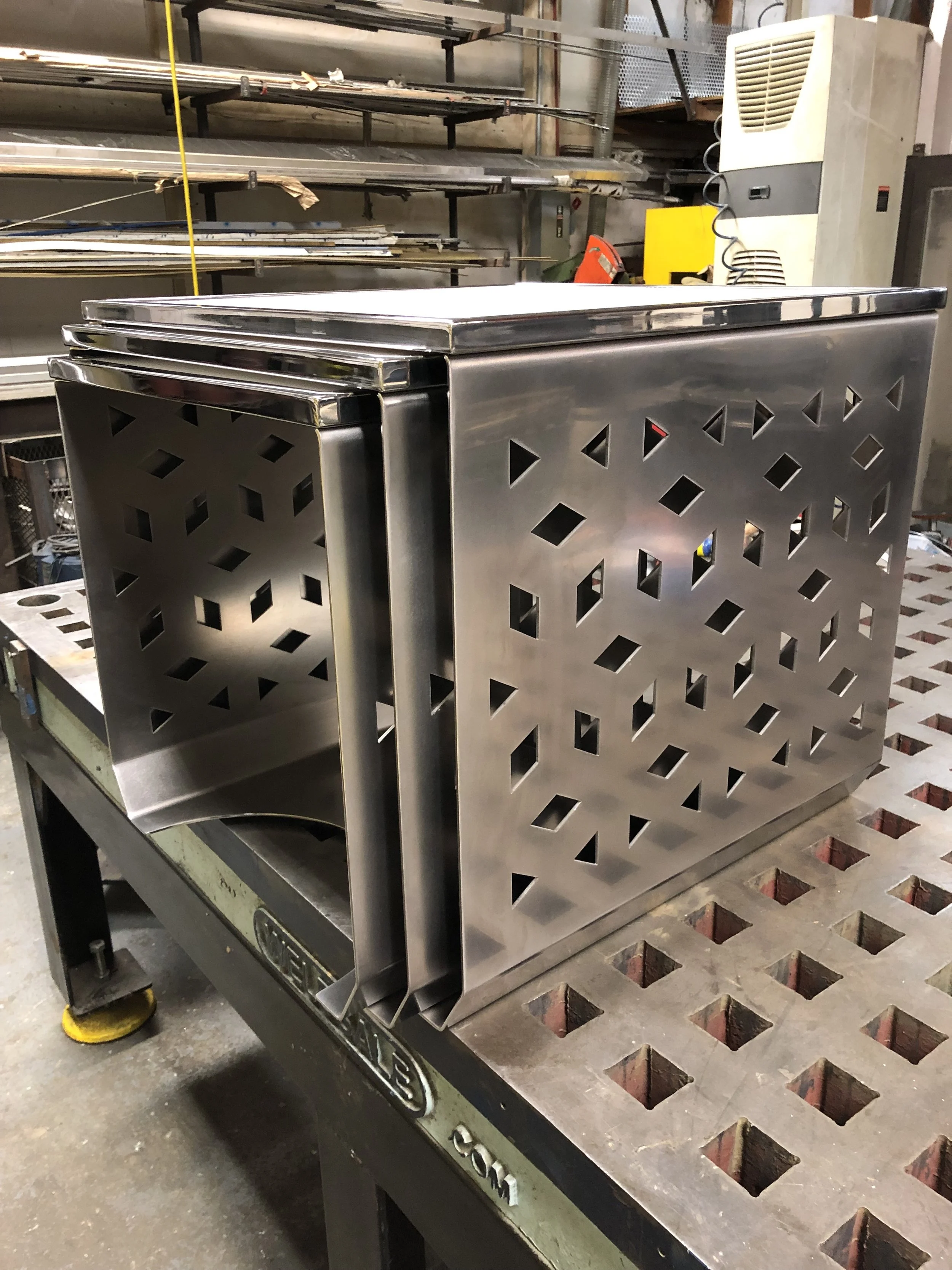 Miscellaneous Projects Stainless nesting side tables Brass bathroom mirror Stainless railing cap Aluminum library ladder